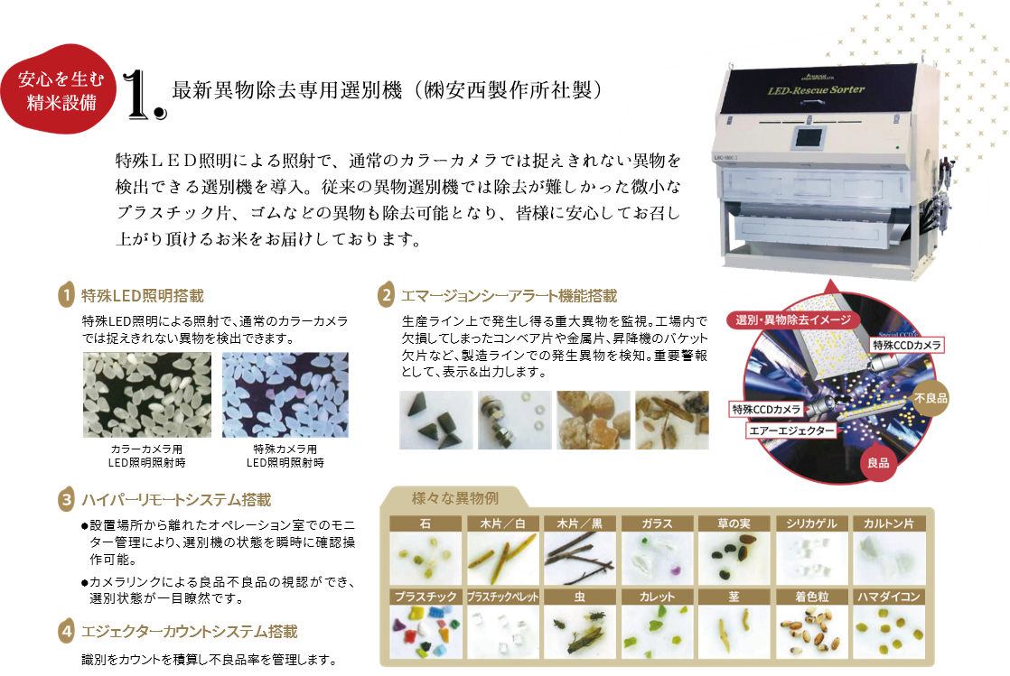 おいしさに磨きをかける最新の設備と技術でより安全で美味しいお米を皆様にお届けします。